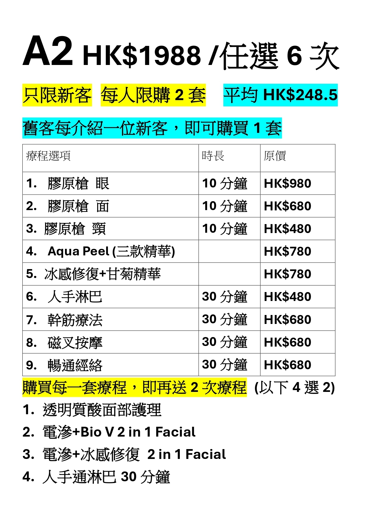 A2 Beaustay TherMatrix 膠原槍優惠套餐 (HK$1988/任選6項)【每人限購2套】【只限新客】