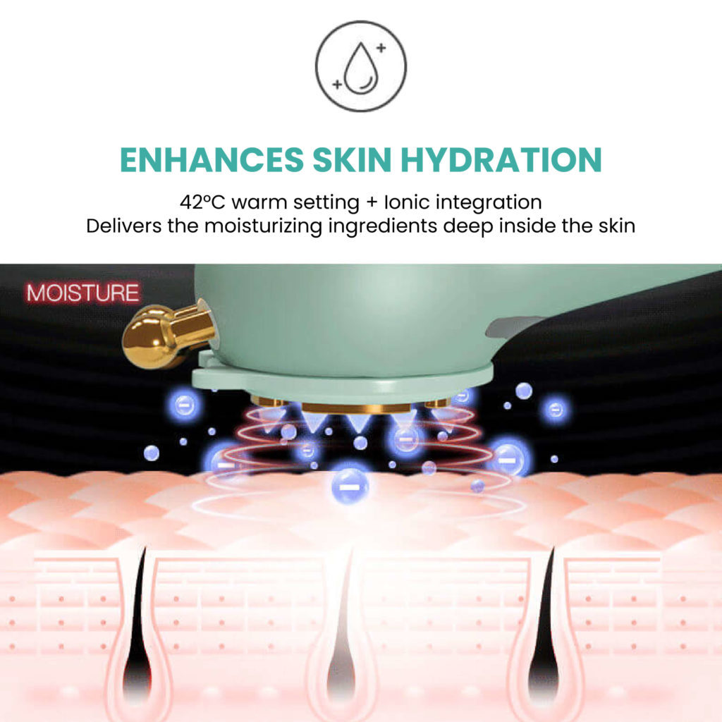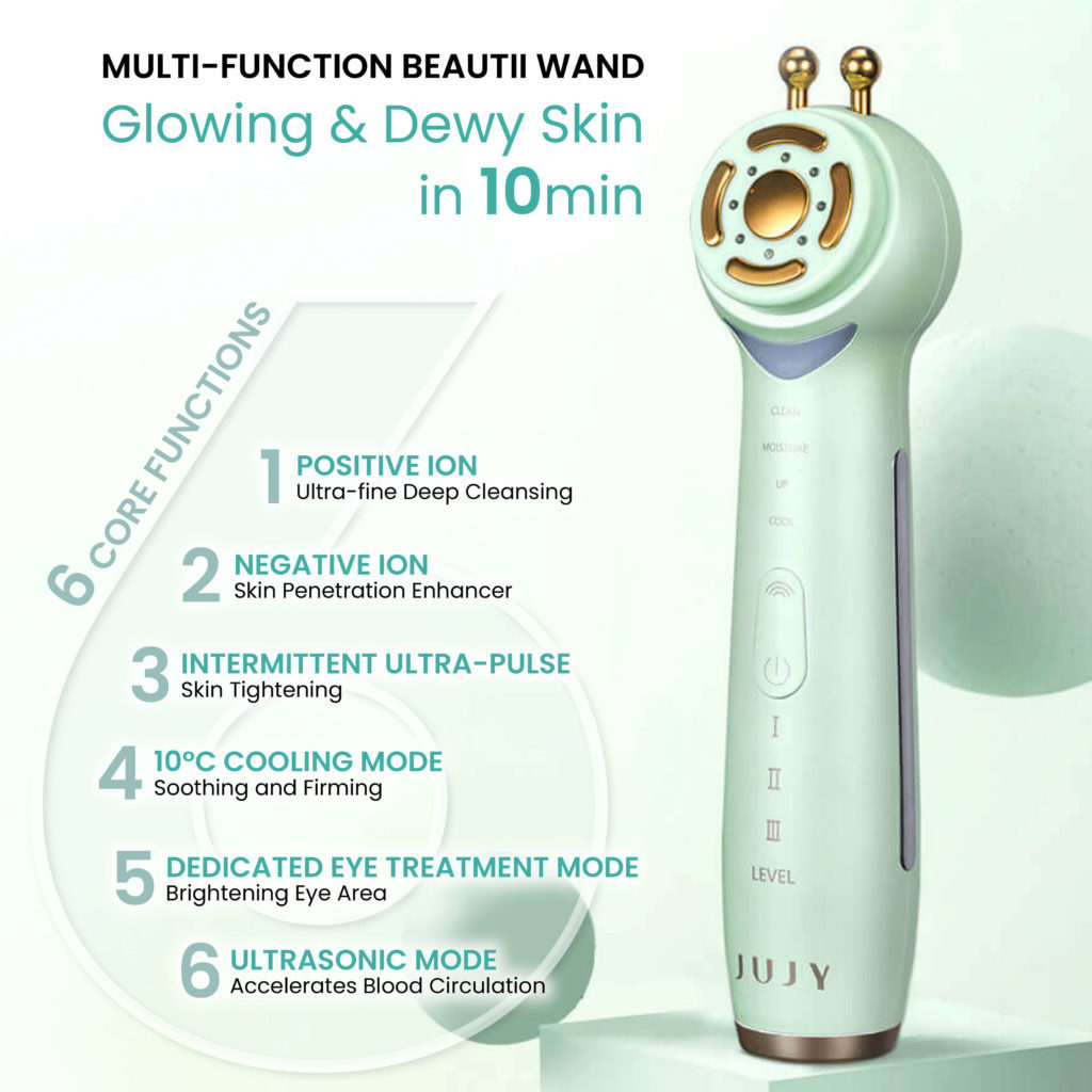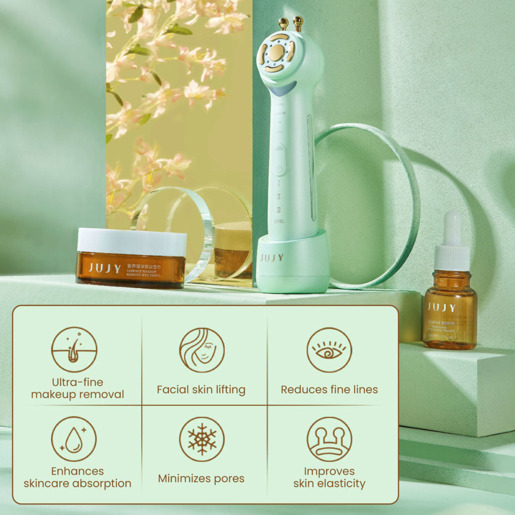 1. Import and export of positive and negative ions + cleansing + face-lifting + hot and cold skin rejuvenation, with professional eye mode, one machine with five functions