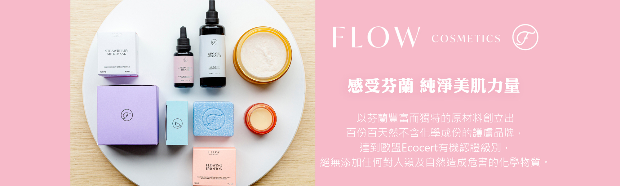 Flow cosemtics 於2004年由一位芬蘭任職芳香治療師的母親所創立。Riitta Jänkälä 深信任何化妝品,護膚品都不應含有人工合成的成分或化學物。憑藉此信念,她以芬蘭豐富而獨特的原材料創立出百份百天然不含化學成份的護膚品牌-- Flow Cosmetics。