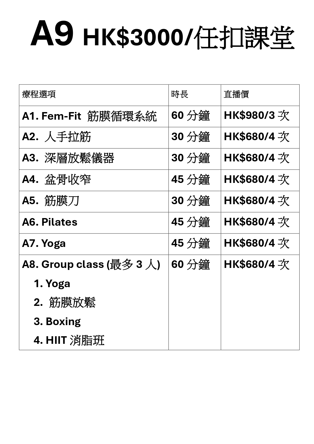 A9 TPlus⁺ Fitness 【HK$3000 任扣課堂】