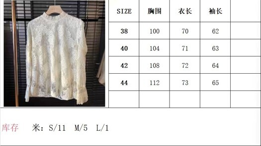 A59 GC101131 米白色蕾絲鏤空打底長袖