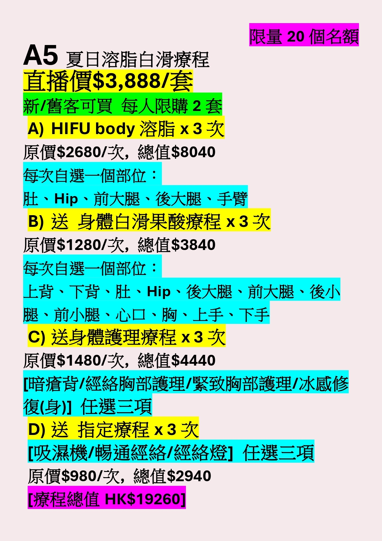 A5 Beaustay 夏日溶脂白滑療程 (HIFU body溶脂 HK$3888/3次) [一part 300發]
