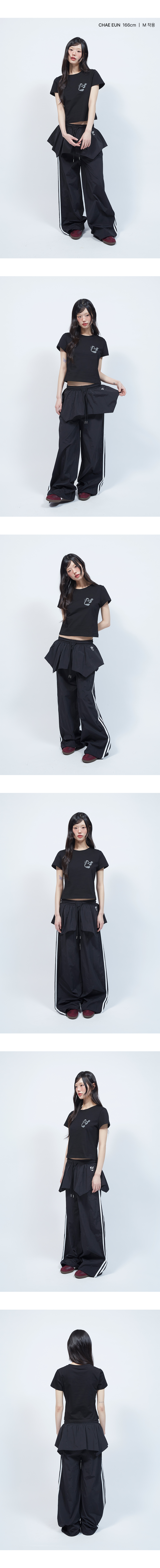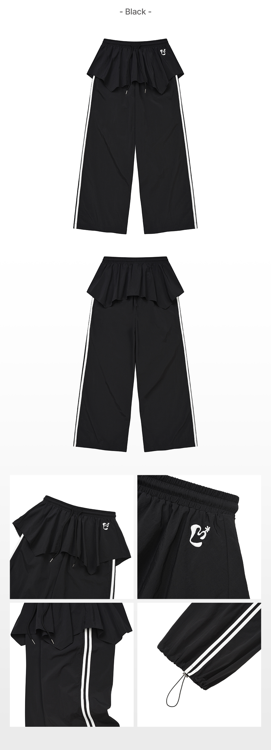 C44 LMR Layered Track Nylon Skirt Pants - BLACK