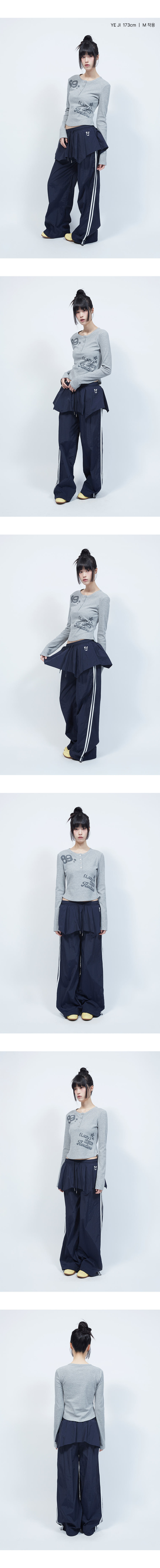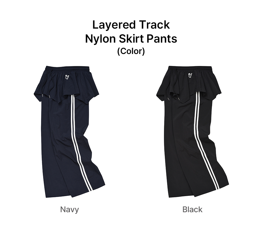 C45 LMR Layered Track Nylon Skirt Pants - NAVY