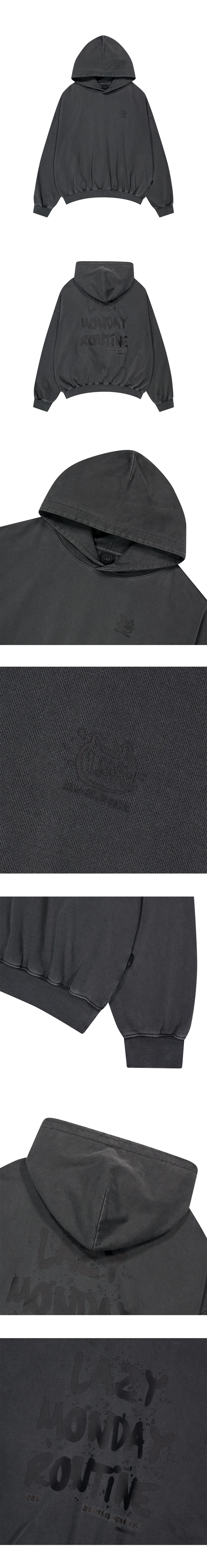 C64 LMR Pigment Overfit Drawing Lettering Hoodie - CHARCOAL