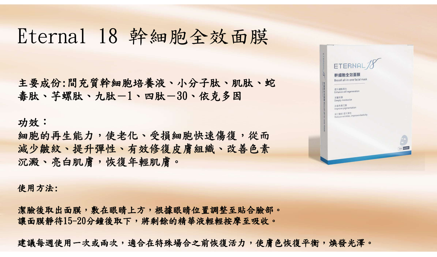 Eternal 18 幹細胞面膜 買一盒65折,兩盒起55折