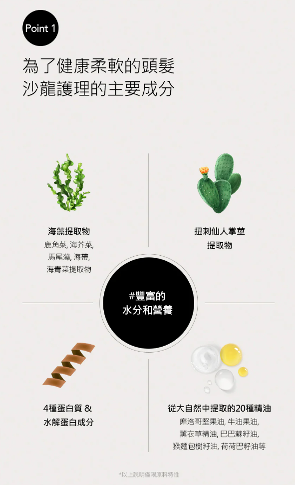 - 含有20種天然精油,及補充水分的海藻提取物和仙桃仙人掌提取物