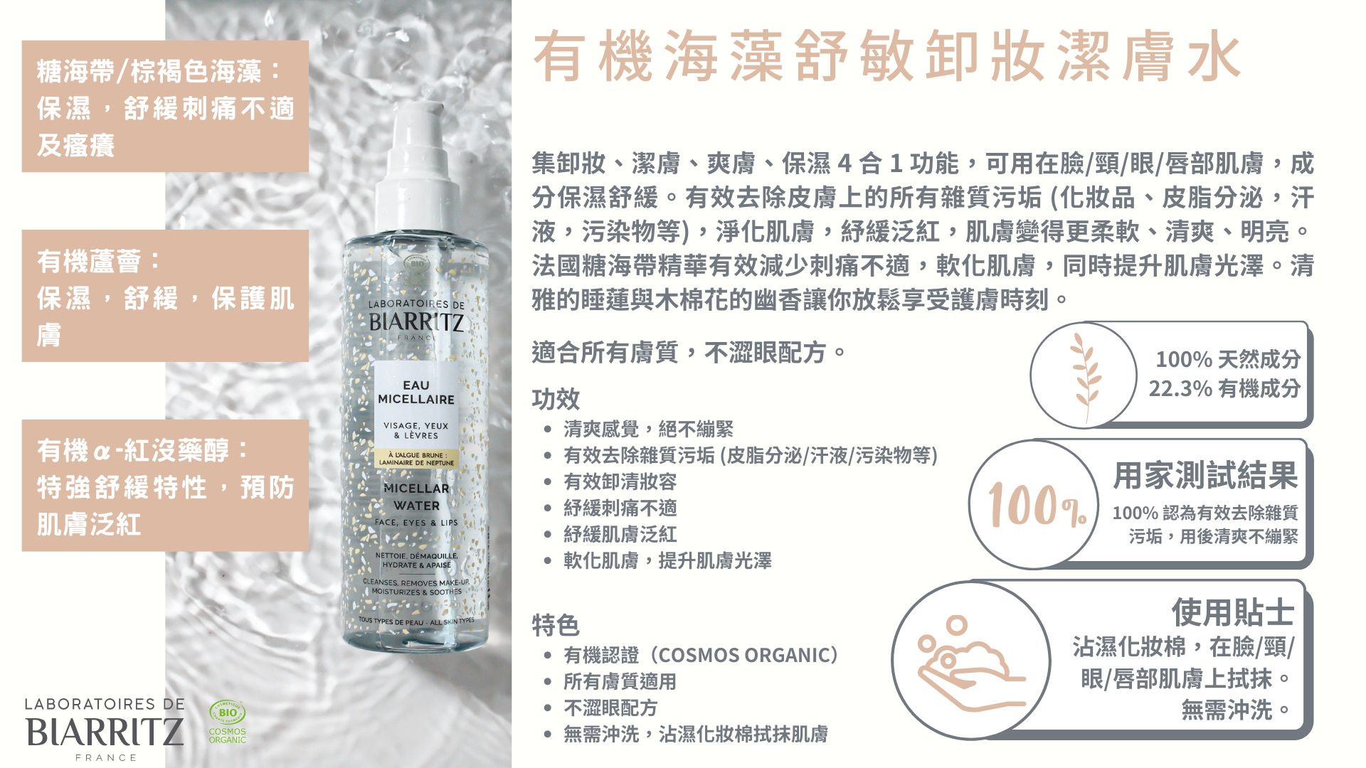 法國糖海帶精華有效減少刺痛不適,軟化肌膚,同時提升肌膚光澤。