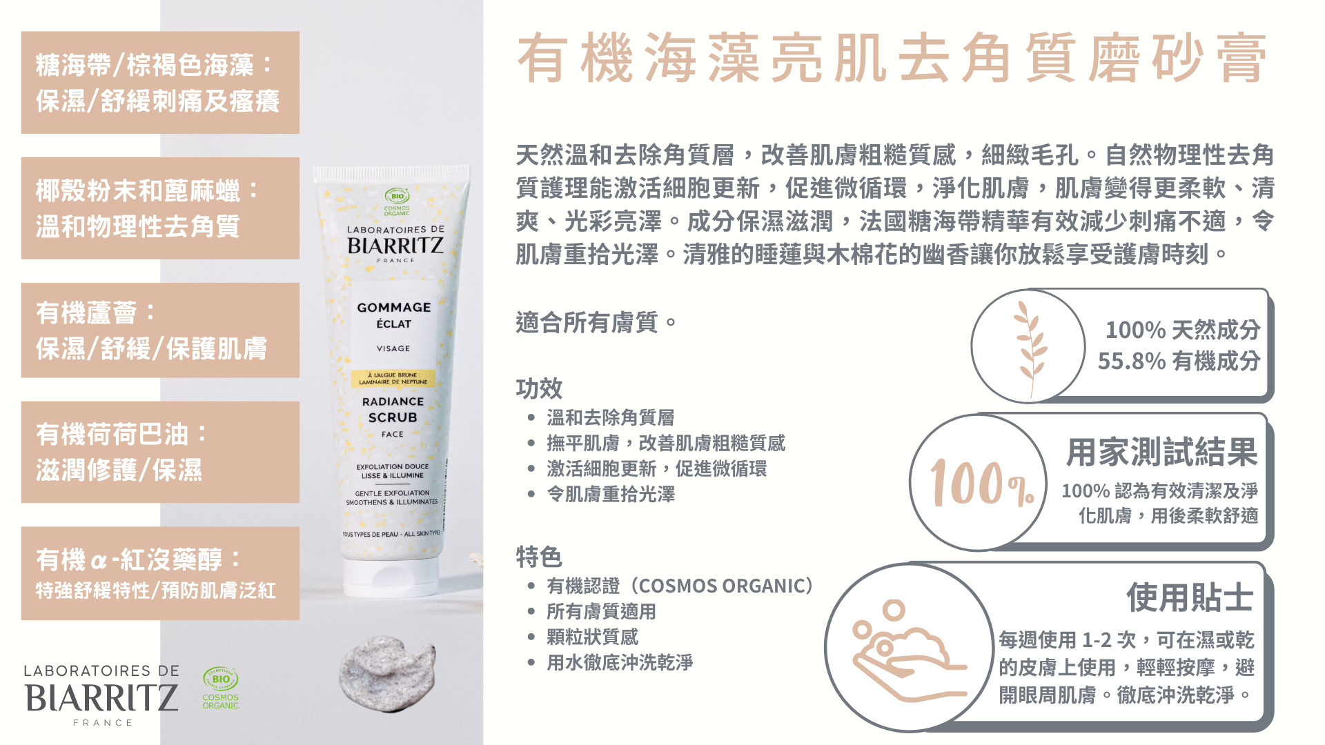 成分保濕滋潤,法國糖海帶精華有效減少刺痛不適,令肌膚重拾光澤。