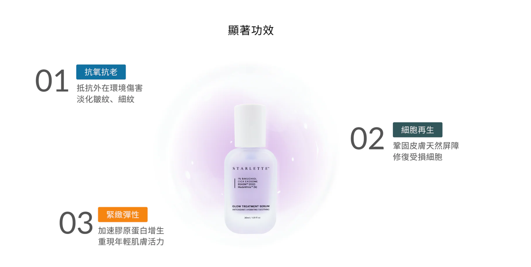 加入天然抗老界巨星級成分補骨脂酚,配搭煙酰胺及積雪草外泌體成分,有效調節皮膚細胞的功能,減緩老化及鬆弛速度,打造光滑無瑕的肌膚。